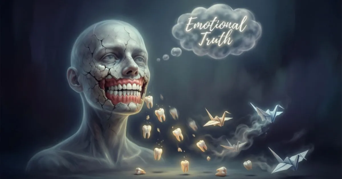 The true teeth falling out in dream meaning is symbolic, not physical. Teeth are closely connected to identity, confidence, communication, and control. When they fall out in a dream, your inner world is trying to speak to you.